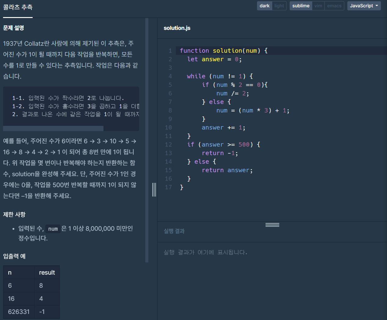 밑에 if문을 통해 제한사항을 충족시켜 주었다.